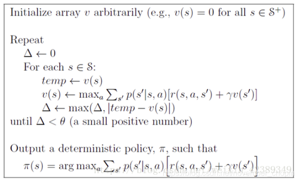 在这个内循环中,我们不断用上一轮的价值估计 Vk 来计算新一轮的价值估计 Vk + 1,直到 Vk 和 Vk + 1 之间的差异足够小(小于某个阈值 θ)。